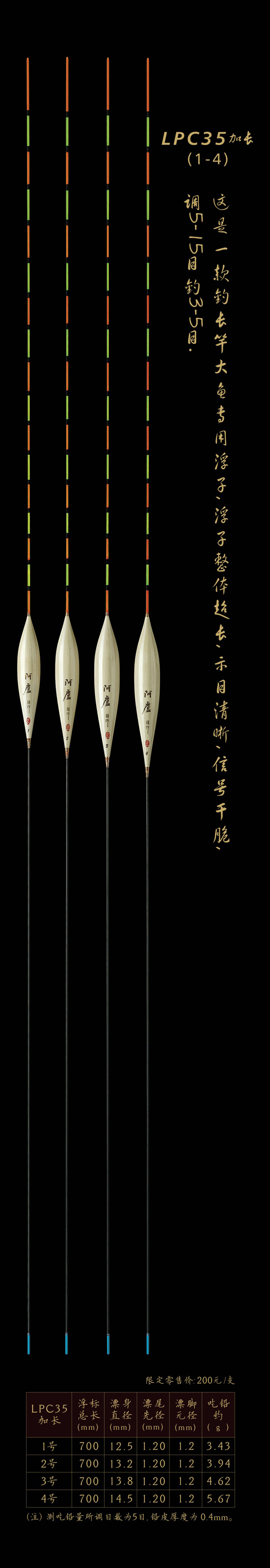 LPC35加長:釣長竿大魚專用浮子,浮子整體超長,示目清晰,信號(hào)干脆,調(diào)5—15目釣3—5目。